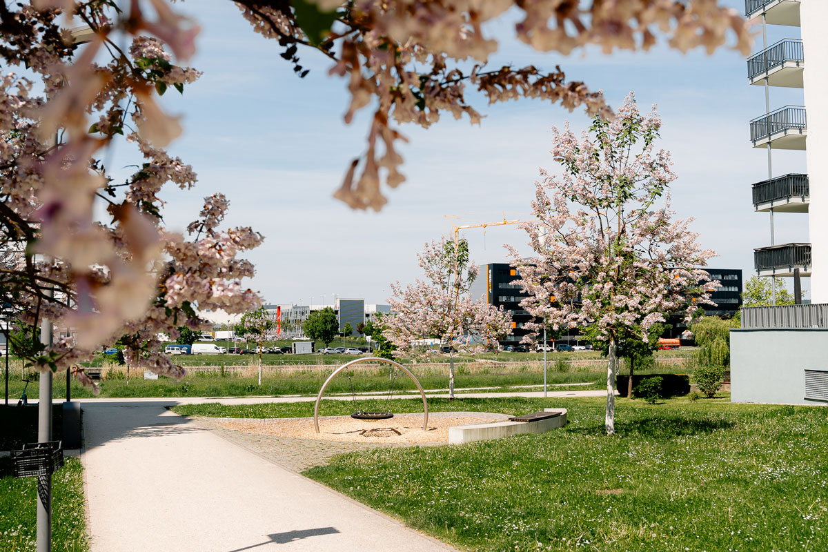Die „Grünen Fugen“ sind die Verbindungswege zwischen der Liesel-Bach-Straße/dem Wohngebiet und der Grünen Mitte. Die beiden westlichen Grünen Fugen sind bereits hergestellt. Die Grünen Fugen entlang der Grundschule Flugfeld können nun, da die Baumaßnahmen an der Grundschule abgeschlossen sind, ebenfalls hergestellt und gestaltet werden. Die Baumaßnahmen beginnen in Kürze.